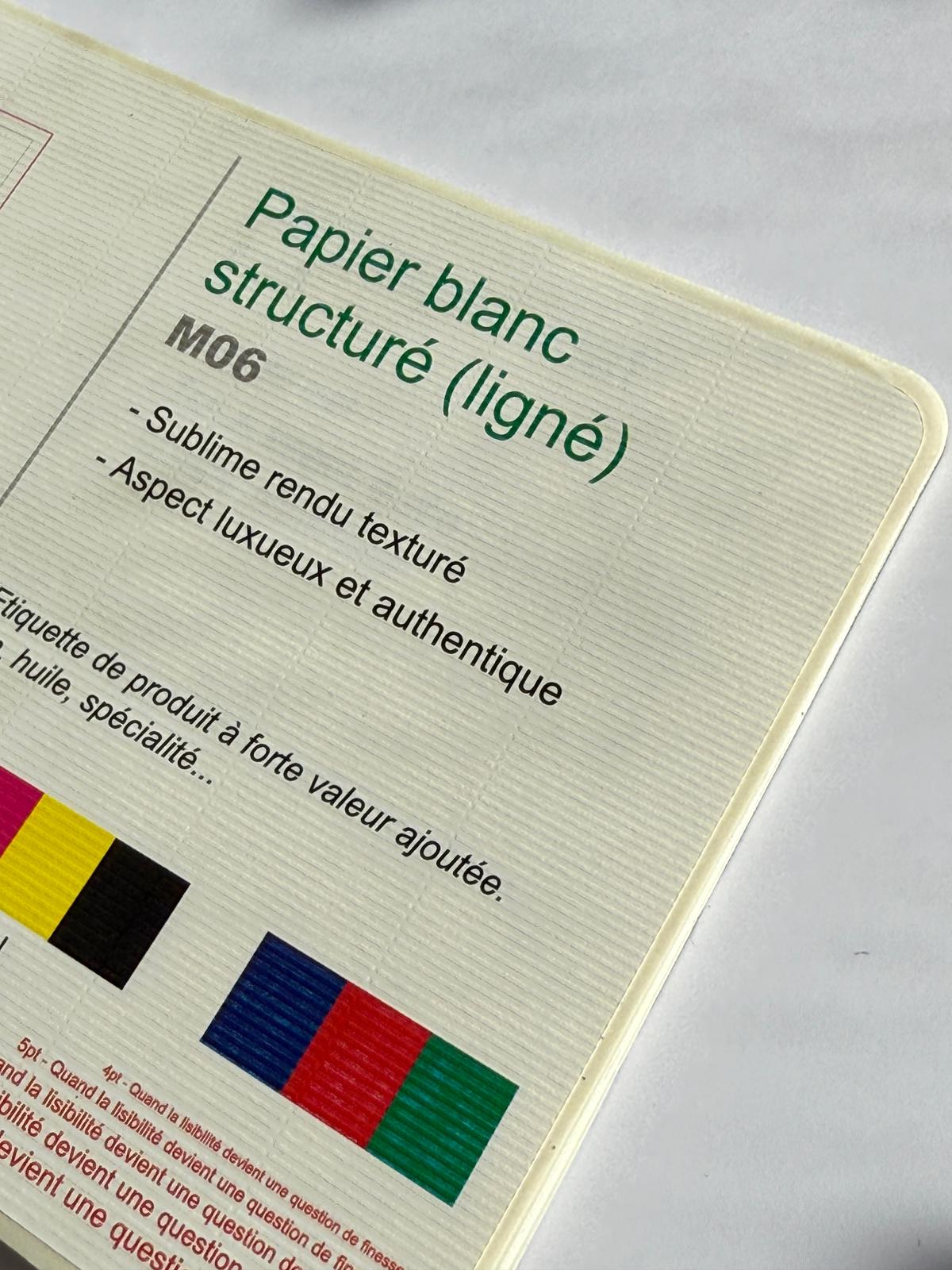 Pour une image premium et un impact immédiat en rayon, optez pour le papier blanc structuré.